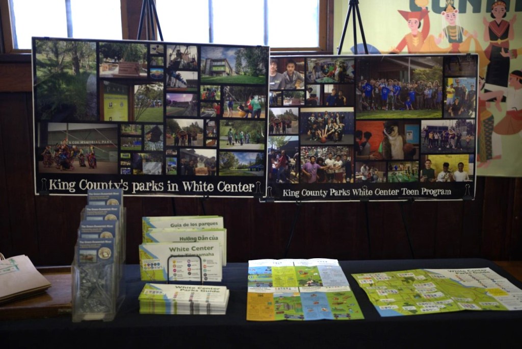 Additional thanks to the WC Blog and WC Now for promoting the event, to the Friends of SCMP for stocking the little free libraries, to Mr. W and Ms. Allison for building the little libraries, to Ms. Brandy for the history of WC and the park, to Ms. Alejandra for the technical assist, to all the community partners that showed up to support, and to King County Parks for the new maps of WC (available in four languages.) Finally, we owe an enormous shoutout of gratitude to the Sunset crew for all they do to support the Teen Program year-round and especially during large neighborhood events.