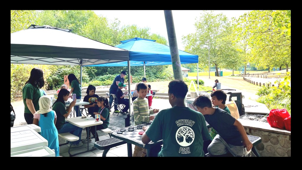 A typical summer in skyway for our program looks as the following; we head out to the park, mosey on over yonder to the chaise, grab our supplies, set up and hand out free lunches, arts and crafts projects and most importantly memories.